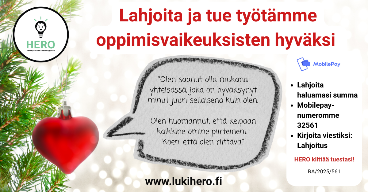 HEROn joulukampanja – lahjoita kätevästi Mobilepaylla, tekstiviestillä tai tilisiirtona